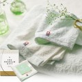タオルにふんわり花咲くカスミソウの花言葉は清らかな心・幸福・永遠の愛・そして「感謝」。可憐なカスミソウに心からの感謝をこめて。タオルのヘムに輝くシルバーのラメが、さりげない上品さを演出してくれます。