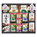 【内容】アマノなすおみそ汁9.5g×3、アマノほうれん草おみそ汁7g・アマノとうふおみそ汁10g×各2、島の香のり佃煮80g・島の香しそのり佃煮80g・のりたまごふりかけ(4.5g×2)・わかめスープ(5.3g×2)・有明海産味付海苔(3切4枚)・梅茶漬け(4.3g×2)・鮭茶漬け(4.7g×2)×各1