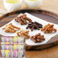 【内容】黒ごまかりんとう・黒糖かりんとう・牛乳かりんとう・ピーナッツかりんとう(各45g)×各4、キャラメルかりんとう・チョコかりんとう(各45g)×各2