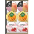 【内容】マンゴープリン 52g×2個、熟果ゼリーピーチ 52g×2個、ヨーグルトムースストロベリー 52g×2個【賞味期間】製造日より180日【アレルゲン】乳成分・大豆・もも・りんご【箱サイズ】160×225×60mm【重量】450g※商品のデザイン・内容等が変更になる場合がございます。ご了承ください。