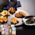 銘菓丸ぼうろに、粗く砕いた黒砂糖を練り込んだ黒糖丸ぼうろと国産玄米から作られた米油100%で揚げたさつまいもかりんとう、黒糖かりんとう。国産のもち米を使用し、米油とごま油をブレンドした油で揚げサクッとした食感の揚げ餅(醤油)と揚げ餅(塩)をセットした和菓子詰合せです。