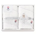 お肌になじみ、水分をしっかり吸収してくれるのでとても使いやすく贈り物に最適です。金糸・銀糸を使うことでさりげない豪華さと気品をそなえています。タオルの名産地「今治」から純白のタオルに気品をのせて。