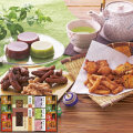 【内容】あられ(海老・海苔・味噌)(各12g)×各2、羊かん(抹茶・練り・小倉)(各60g)・かりんとう(蜂蜜黒糖・落花生)(各40g)×各1