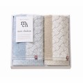 「あたたかな」を意味するフランス語"chaleur"と「世界」を意味する"mond"から名づけられたMonChaleur。やわらかであたたかみのあるやさしい色合いの今治タオルです。縦に2つの色を配し、右側の縄の網目のような模様が特徴です。