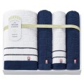 ネイビーとホワイトのコントラストが美しい品格あふれるギフトセット。ノーブルな紺色と白色のコントラストが美しい、高級感のあるタオルです。フォーマルでも映えるシックでモダンなデザインが自慢です。